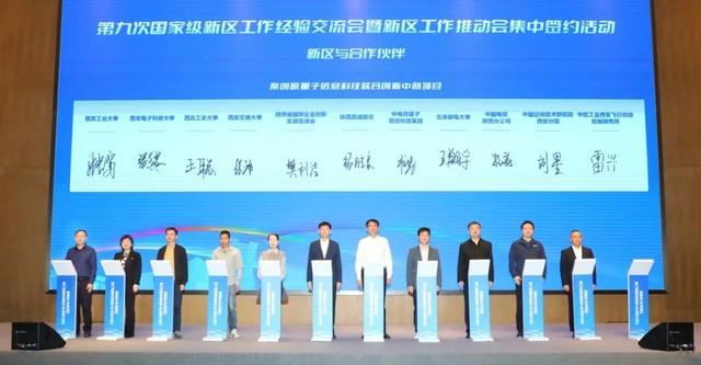 西咸新区与中电信量子信息科技集团有限公司,西安交通大学、西北工业大学、西安电子科技大学、北京大学量子信息技术中心,中国空间技术研究院西安分院、中国航空工业集团西安飞行自动控制研究所、中国电信股份有限公司陕西分公司等单位签约,秦创原量子信息科技联合创新中心正式落户新区。
