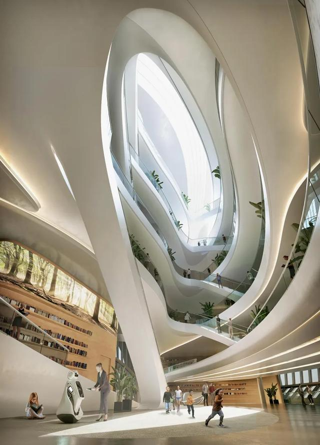 施工人员正在进行二次结构及屋盖项目施工,目前屋顶幕墙已完成30%,完成后南北两座建筑体将通过空中连廊连接在一起,形如一条蜿蜒的泾河。