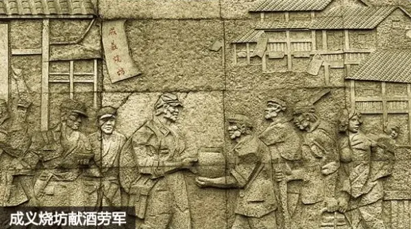 成义烧坊始创于1862年,产于中国贵州省仁怀市茅台镇。作为国酒茅台的正宗前身,成义烧坊开创中国酱香型白酒先河,享有“天下酱香出成义”的美誉。1935年,红军长征四渡赤水战役,其中第三次就在茅台镇。红军处境艰难,成义烧坊搬出家藏美酒为红军擦洗伤口,帮助红军度过难关。其胸怀、其大义,革命胜利后,周总理曾经说过,茅台酒是中国革命的润滑剂。当时的茅台酒指的就是为红军献出疗伤美酒的“成义酒”。为表彰成义烧坊在红军长征途中的特殊贡献,在红军四渡赤水纪念碑上永远留下了“成义烧坊”的金字招牌,这也是纪念碑上铭刻的民族品牌。