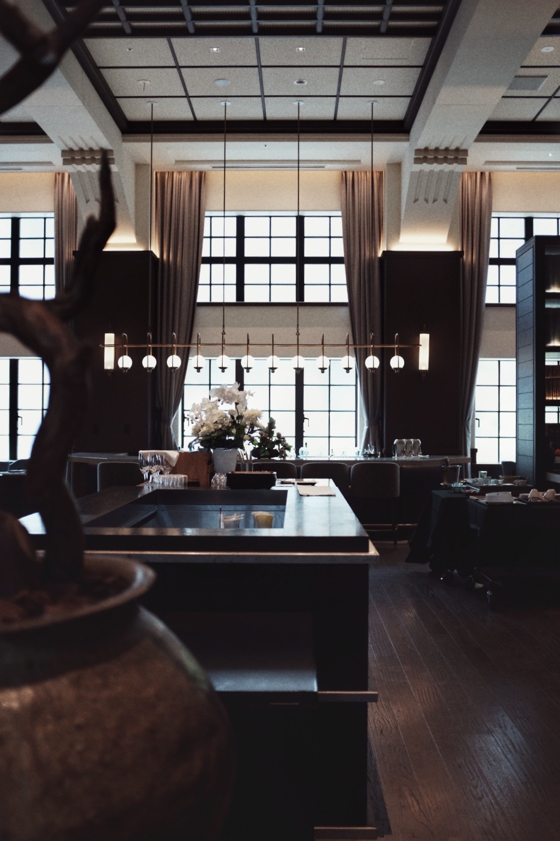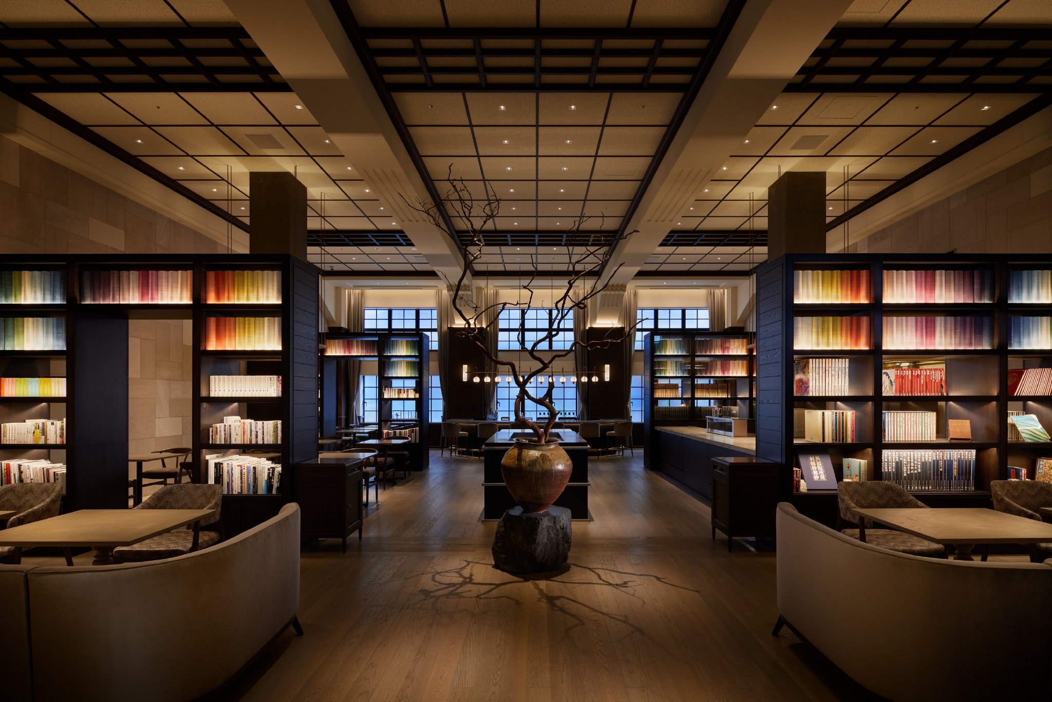 门童从入口处就迅速而安静地引导入内,年纪稍长的大堂经理送上热毛巾和清茶,再用日英双语缓缓介绍着酒店的布局。她说:“从这里过去可以预约汤池,那边是全天开放的酒廊。”语气不疾不徐,没有太多训练痕迹,反倒让人觉得这是生活常态的一部分。