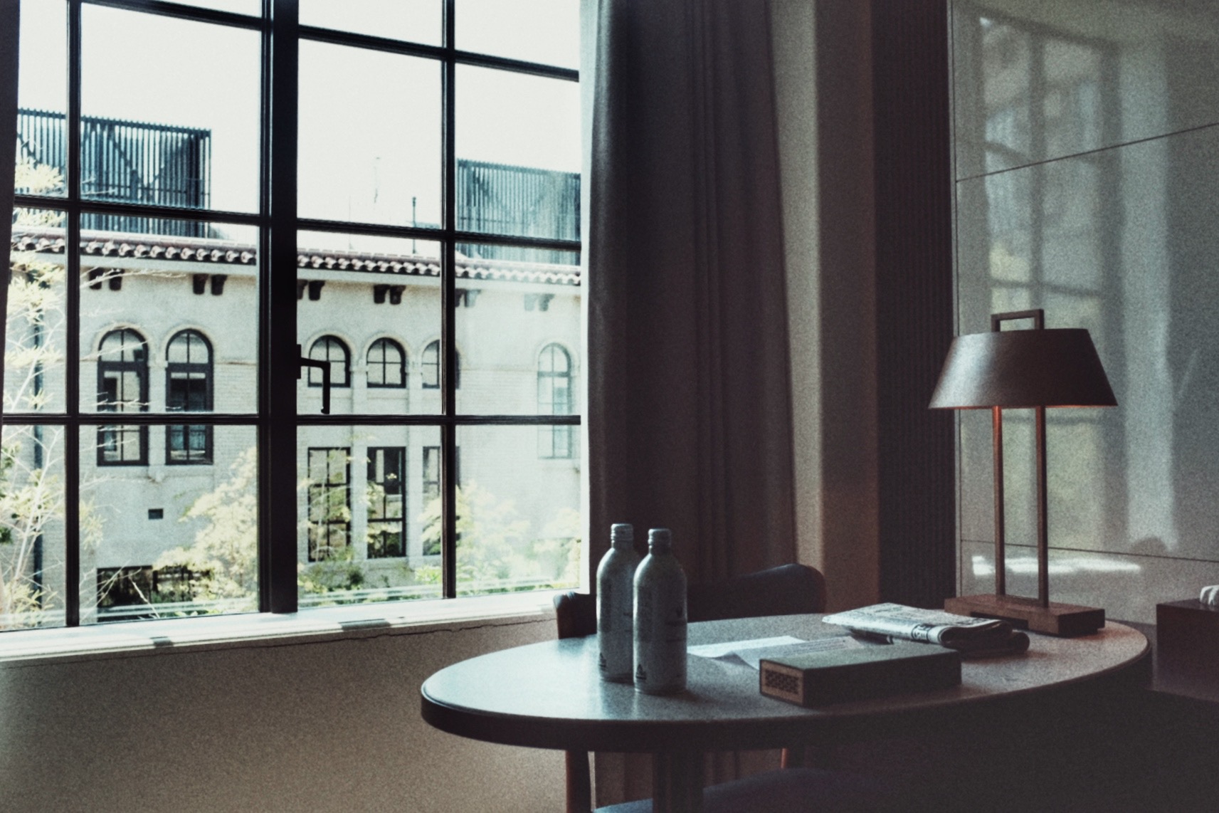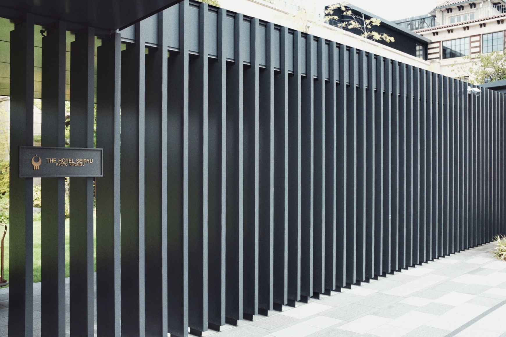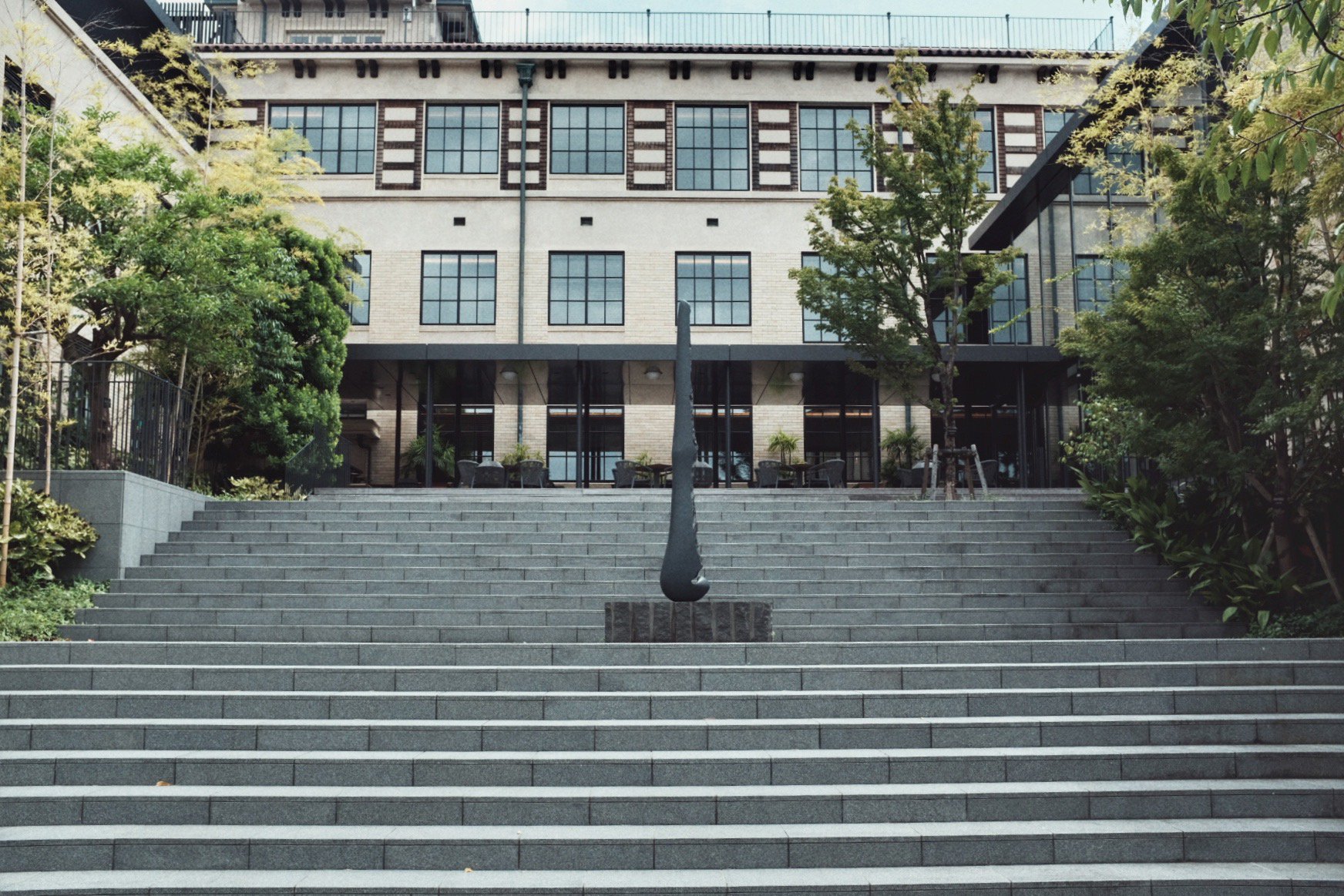 穿过鸭川,再往东山,街道变窄,游客却始终随在左右。路过祇园后转角上坡,尽头便是清水寺,然而我们到了半山腰便转进了一处静谧的广场和草坪,到了这次目的地:京都清水青龙酒店。酒店是由京都清水小学改造而来。校舍为砖造结构,混合西洋比例与日式细节:厚重的檐口搭配纵横的窗框。改造后加入立鼎世酒店联盟成为其中一员,从挂在墙上的旧照片来看,建筑外观形式虽变,肌理却未动。