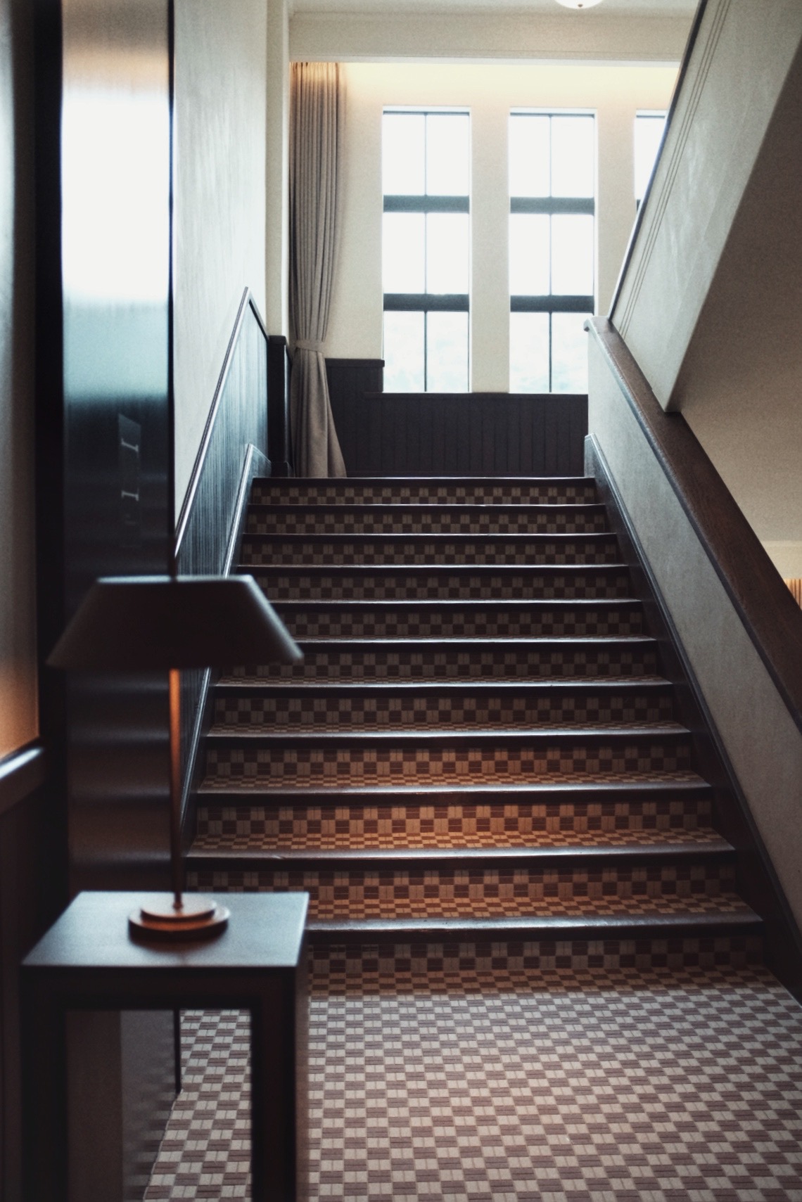 酒店的改造可以说没有仿旧,也不是单纯的翻新,原有结构大都被保留下来。图像里是过去的空教室,而现实中,那些空间被轻轻转化成了走廊、酒吧、餐厅、客房、行政酒廊。顺着走廊慢步前行,踏上楼梯,穿过铺着细密瓷砖的转角,房间如同你儿时的教室一般等着你打开。