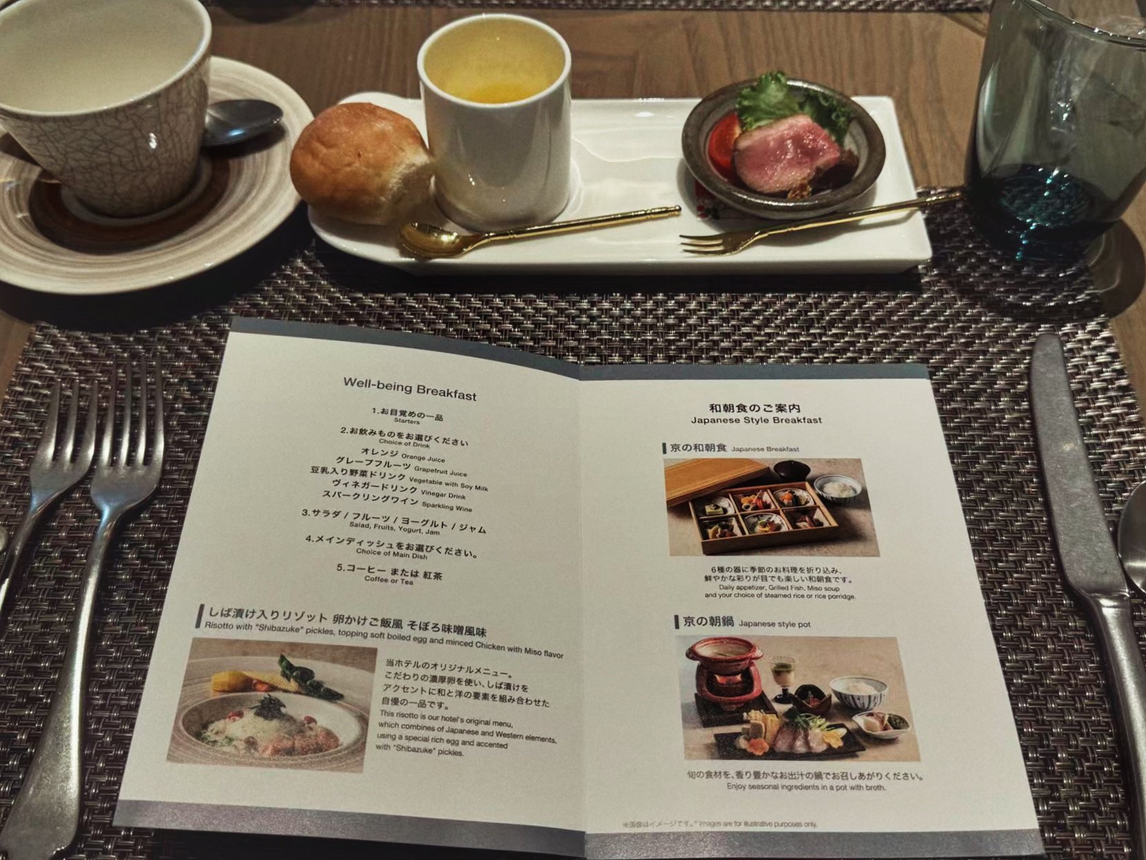 在这家以老建筑改造而自豪的酒店里,早餐毫无疑问是一段延续体验调性的环节。清水青龙的早餐采用点餐制,不论是日式的怀石风格还是西式健康套餐,都被规整地写在菜单里,图文并茂,几乎能满足住客清晨所有的胃口与情绪。