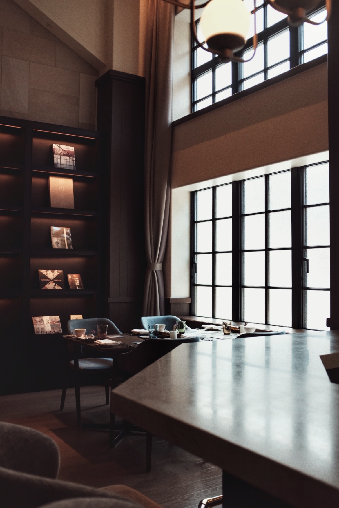 早餐结束后,服务员特意为我展示了餐厅空间在改造前的照片——那曾是学校时期的礼堂,原本的舞台区也被改成了如今布满图书的书架。看着照片里的旧场景再回望眼前,确实令人难以想象这是同一个空间。这种来自空间记忆的穿越感,是清水青龙最动人的部分之一。