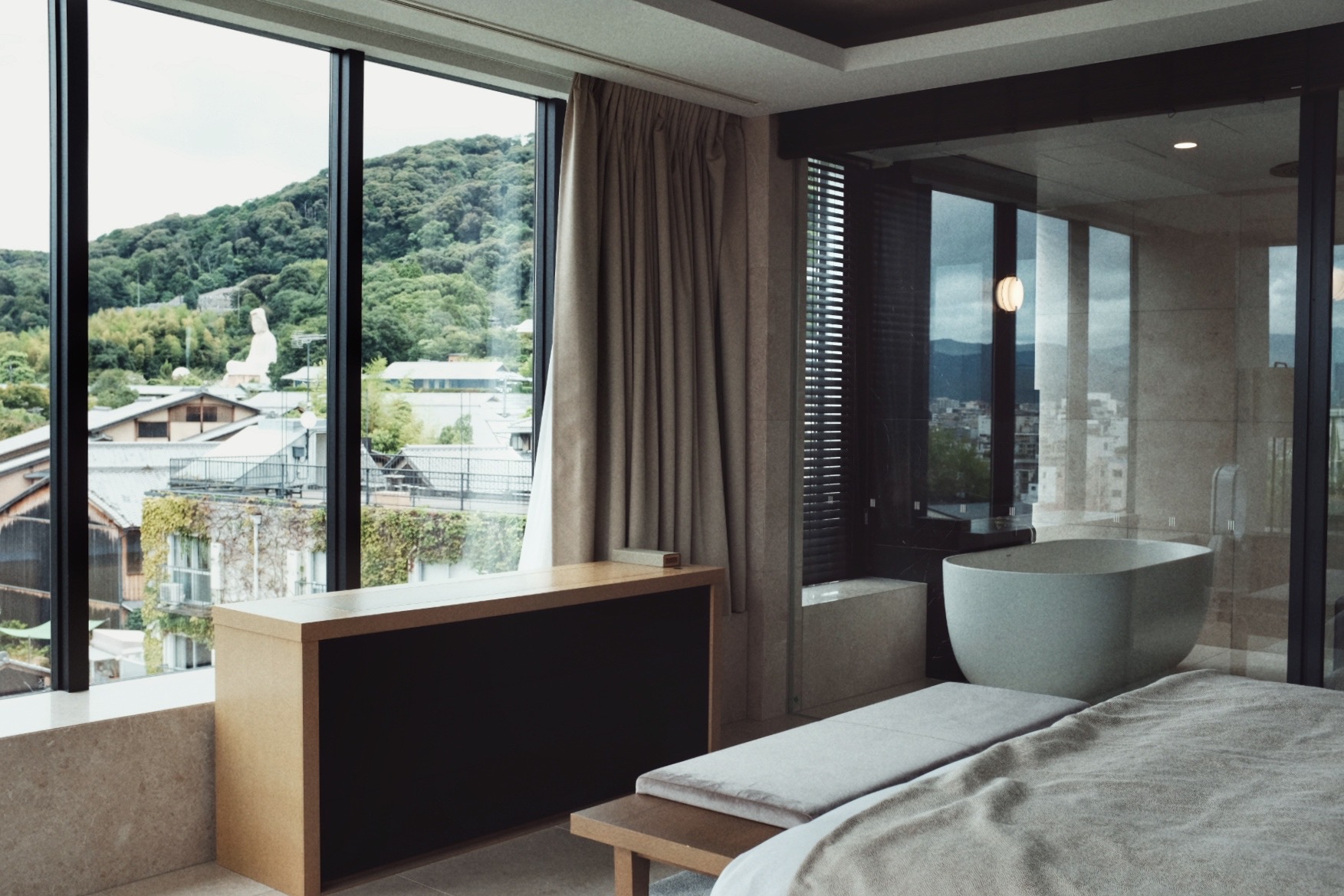 山脚下的四季(Four Seasons Kyoto)价格略高、清水青龙与六善(Six Senses Kyoto)相当,但在空间布局上略逊一筹,尤其是基础房型的卧室尺度与采光感,多少因为老校舍结构限制而有所妥协。不过,区域环境与公区配套显然为整体体验加了不少分——比如几乎全天开放的酒廊、配备专属露台,都是同价位中难得的存在。