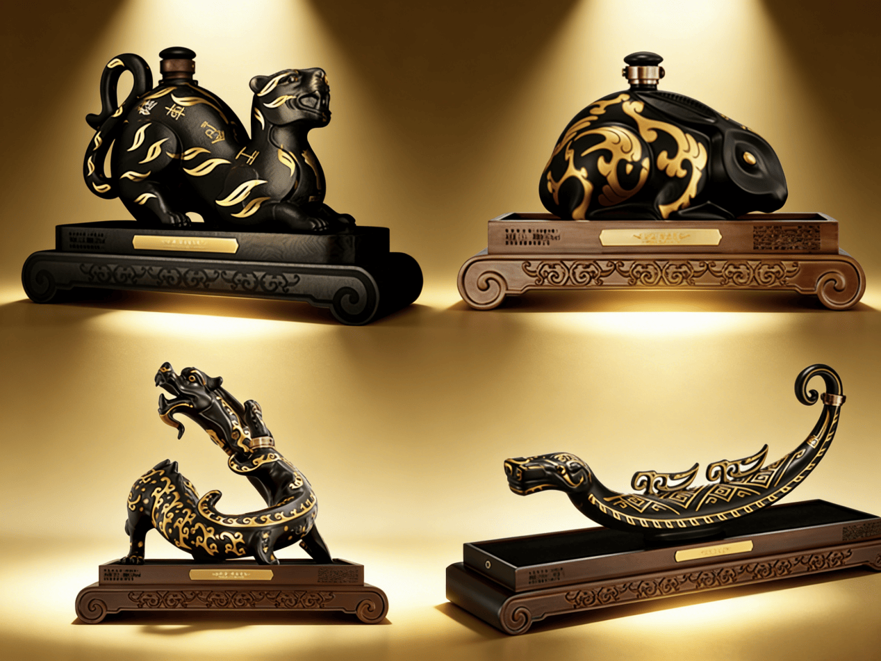 2021年起,珍酒在行业内创新推出“错金”生肖系列,“错金铭文虎”灵感源自西汉南越王博物馆藏品错金铭文虎节,“错金兔”灵感源自观复博物馆藏品错金银兔形镇,“错金龙”灵感源自故宫博物院藏品错金铜蟠龙,“错金蛇”灵感源自三星堆博物馆藏品青铜蛇,让“沉淀于历史、珍藏于馆阁”的文化遗产真正“活化”和“流动”起来,构建了一条清晰、可持续的文化IP脉络。