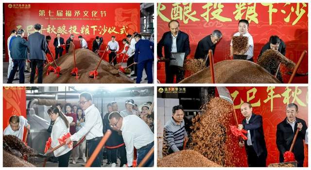 在福矛第三酿造车间投粮分会场,舞蹈《重阳下沙》以灵动舞姿再现古人秋酿场景,主要领导和行业专家代表与集团领导共同为糯红高粱润粮翻拌,开启福矛新一轮酿造周期。