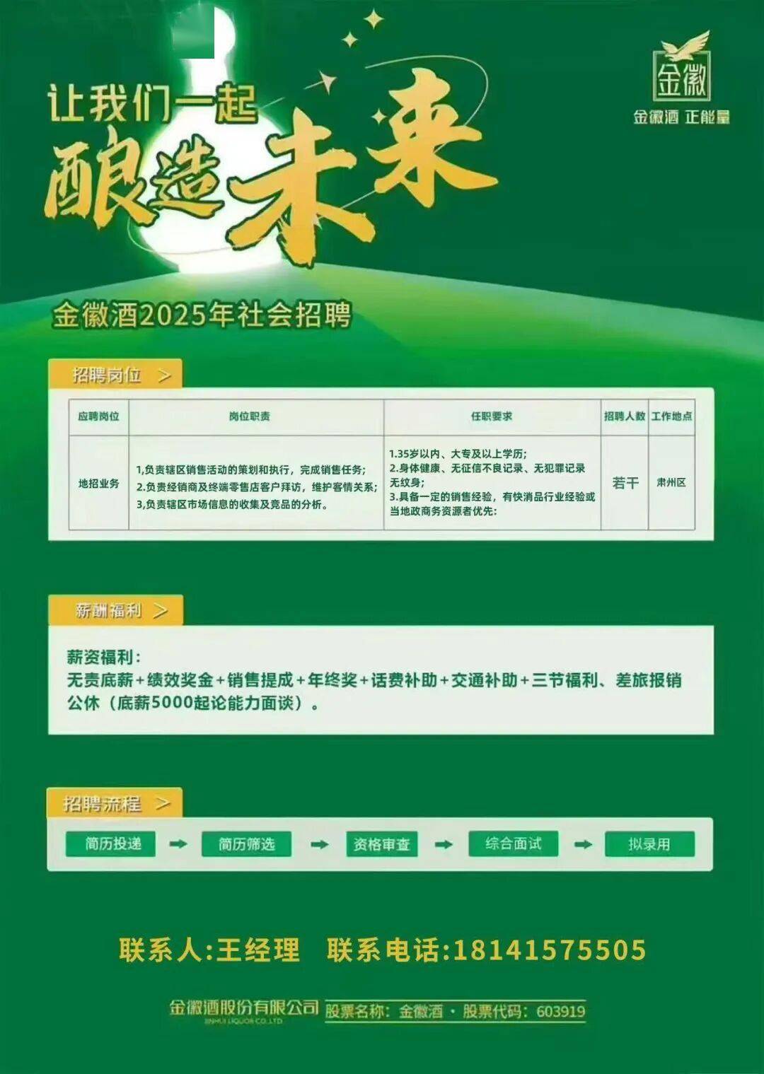 1、1年以上酒类行业或者其它快销品行业销售,相关工作经验;