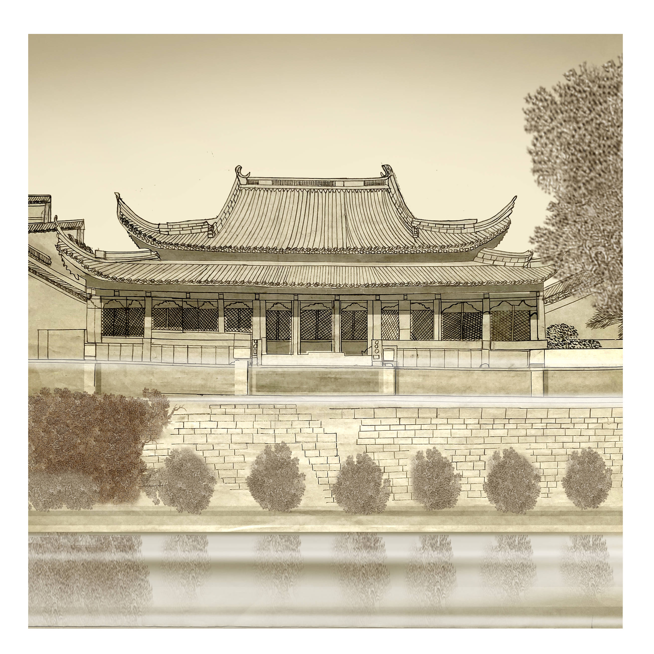 界画寒江---盛世华夏:“天下名寺”之-浙江.宁波.保国寺(墨稿)