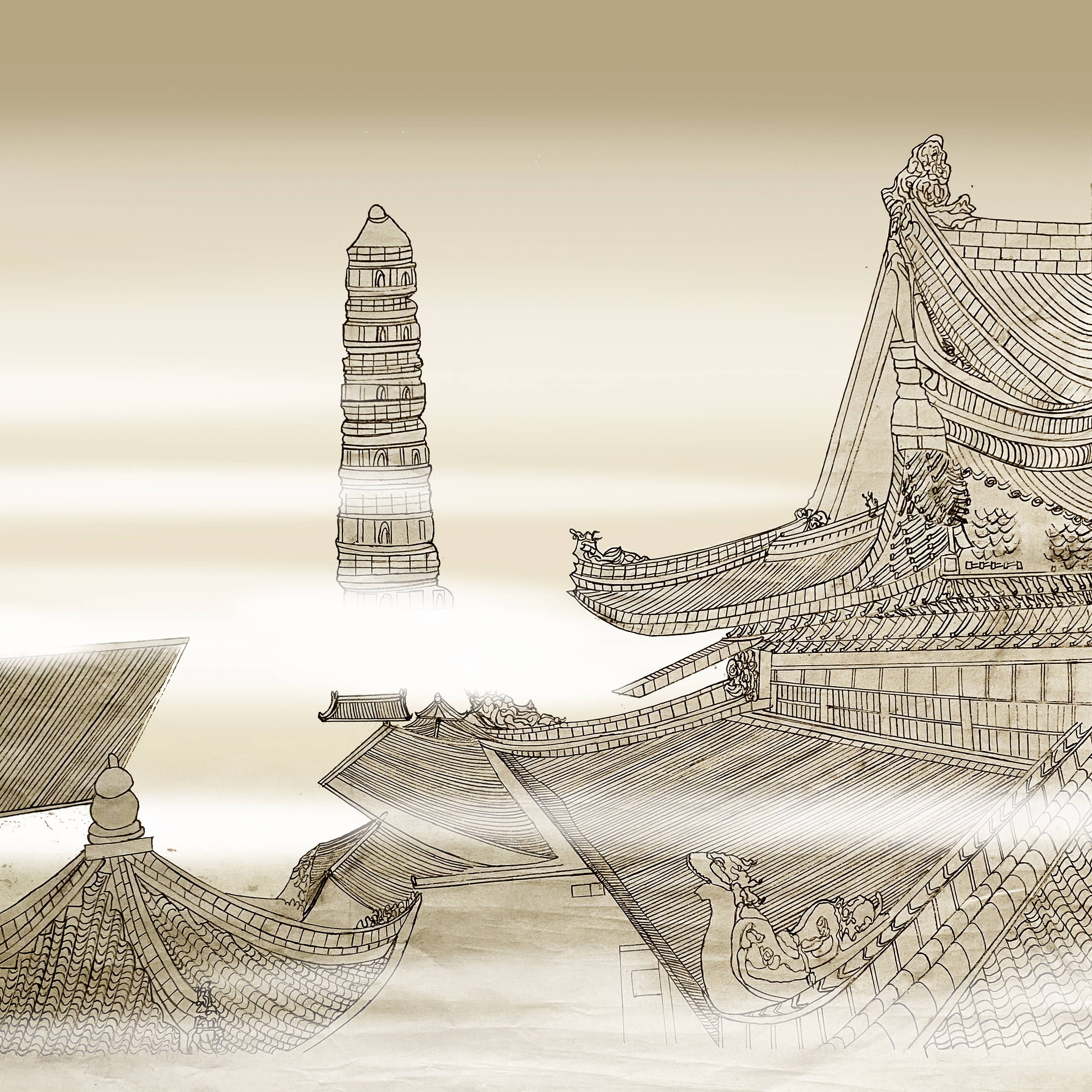 界画寒江---盛世华夏:“天下名寺”之-河北.正定.隆兴寺大悲阁(墨稿)