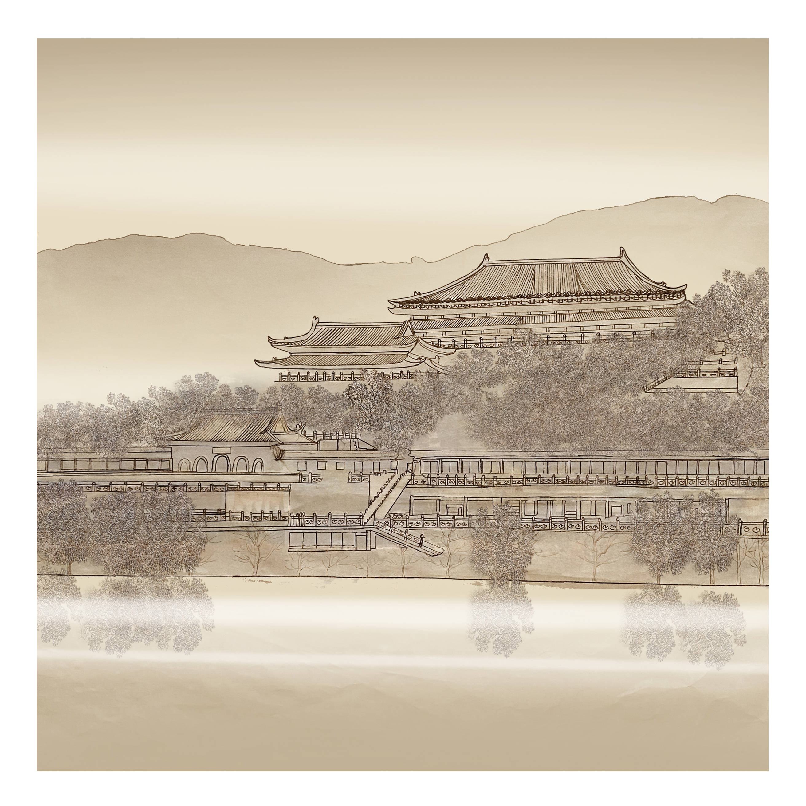 界画寒江---盛世华夏:“天下名寺”之-湖北.当阳.玉泉寺(墨稿)