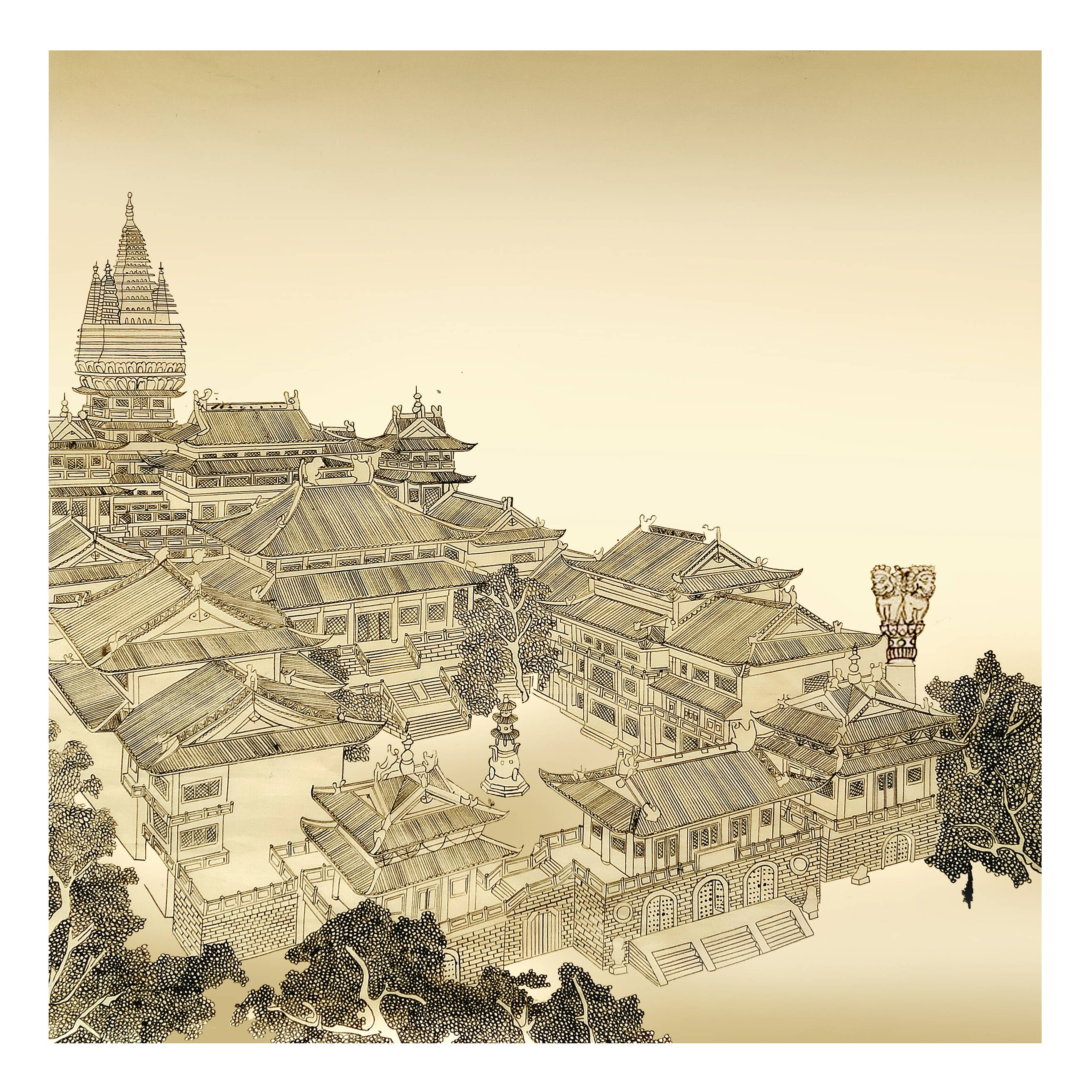 界画寒江---盛世华夏:“天下名寺”之-上海.静安寺(墨稿)