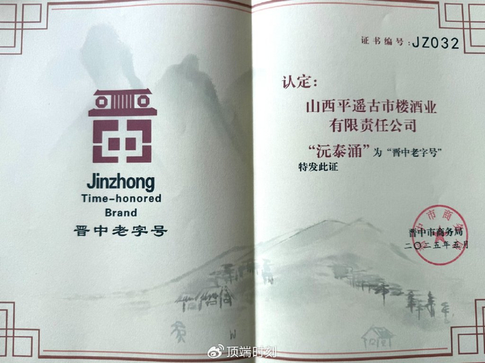 值得关注的是,今年5月15日,晋中市举行首批“晋中”授牌仪式,山西平遥古市楼酒有限责任公司“沅泰涌”被认定为“晋中”。这一殊荣,为百年酒坊的现代新生再添注脚。