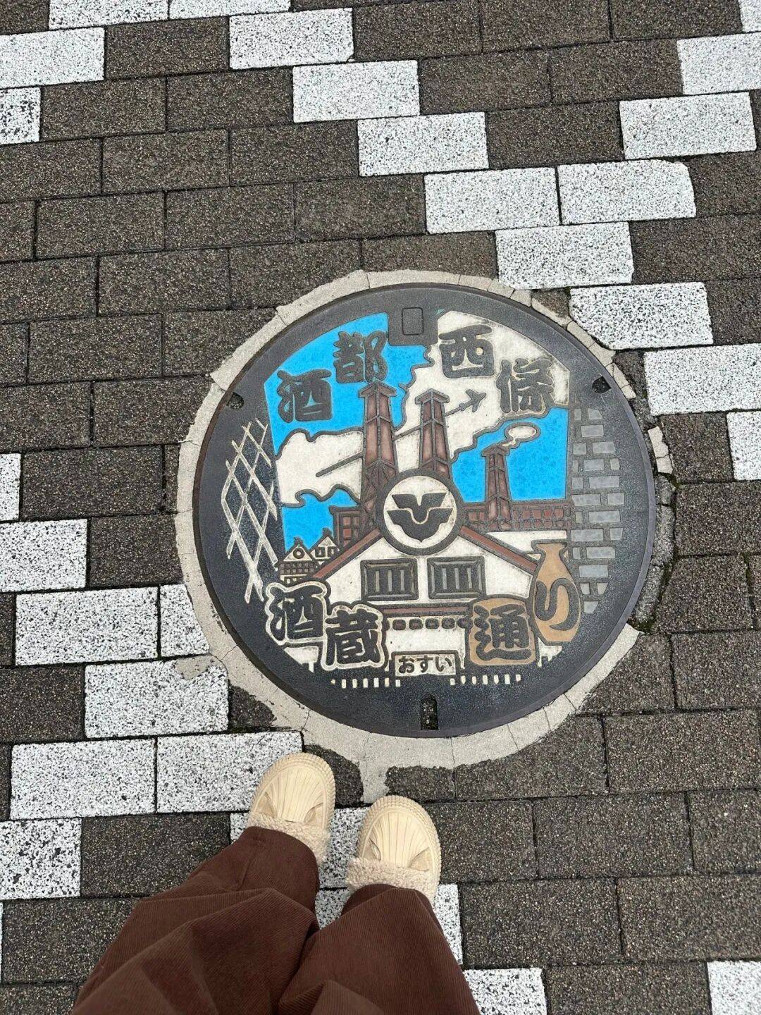 在西条酒藏通り上行走,别忘了低头看看脚下。富有西条酒都风情的井盖设计精美,描绘着酿酒相关的图案。如果你喜欢这些设计,可以在酒藏街上买到同款钥匙圈、毛巾等周边产品,把这份酒都记忆带回家。