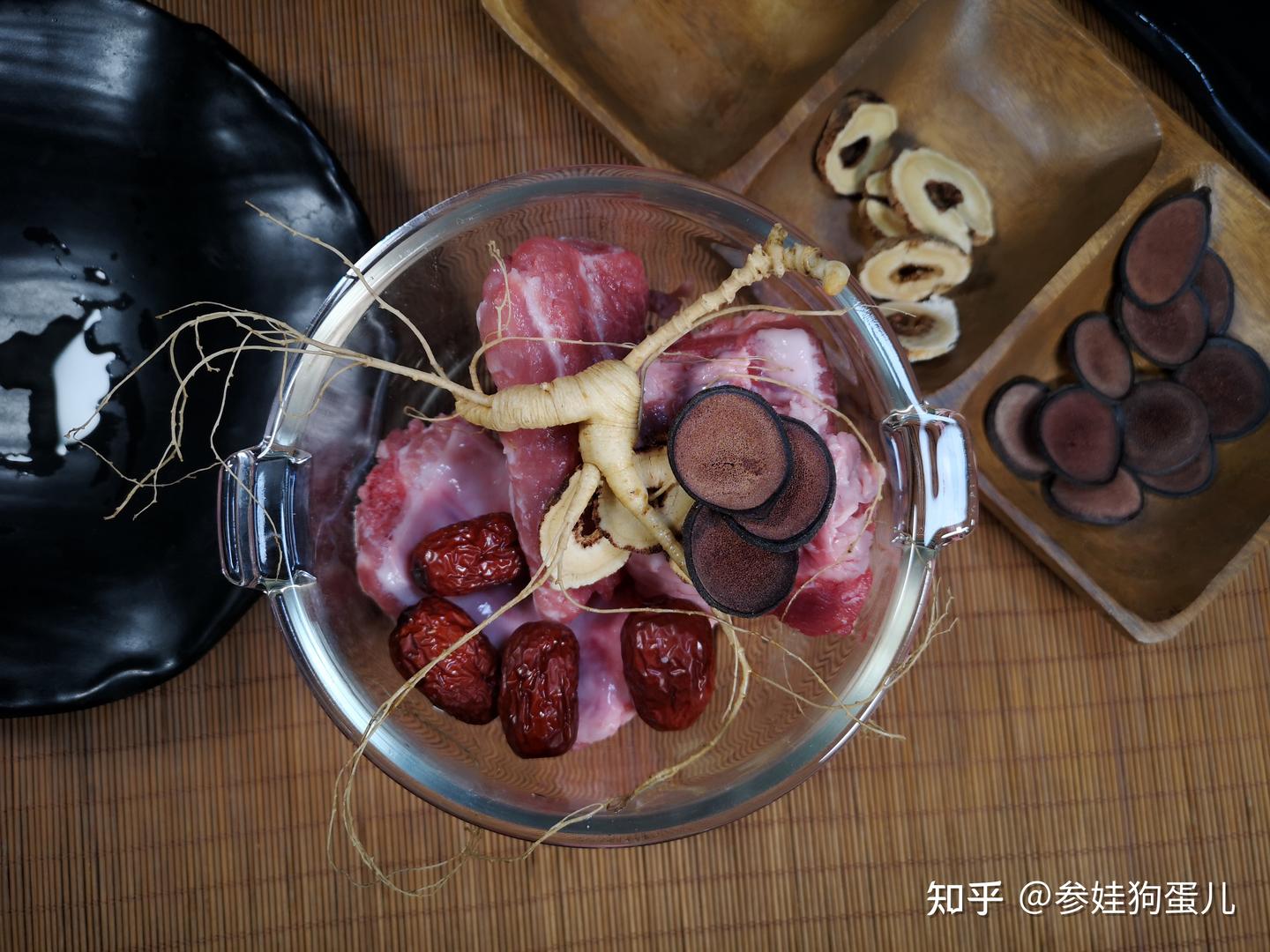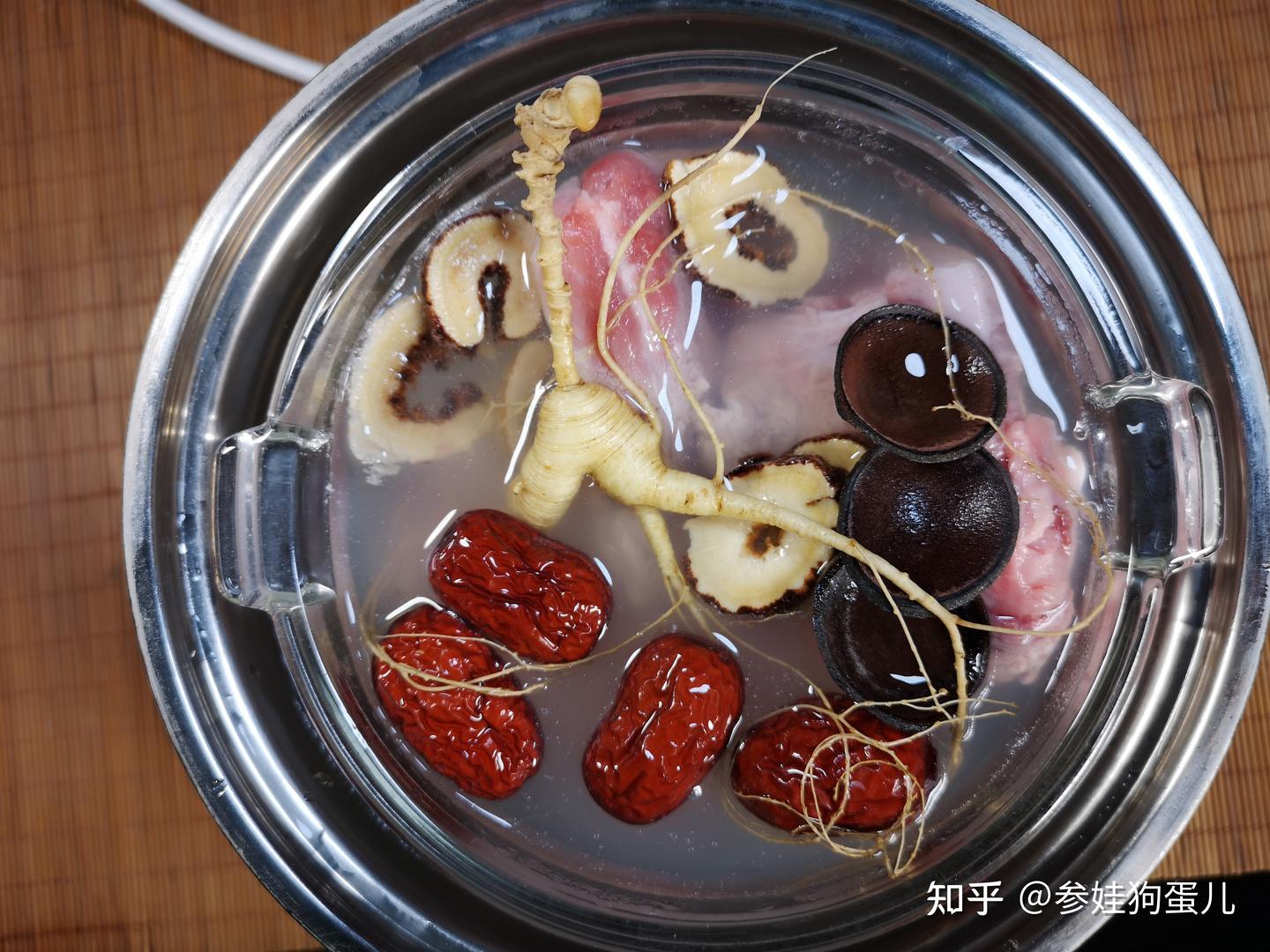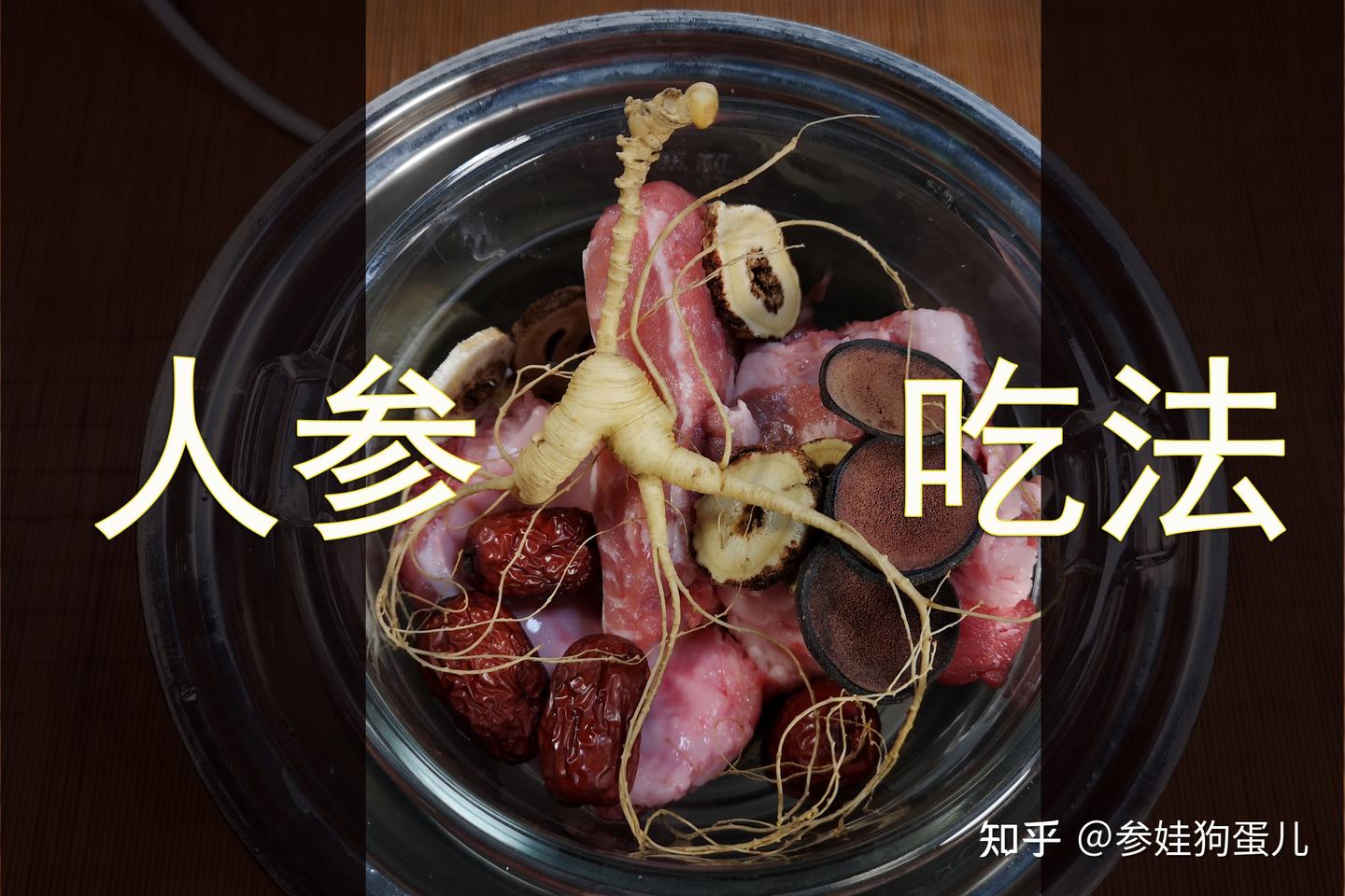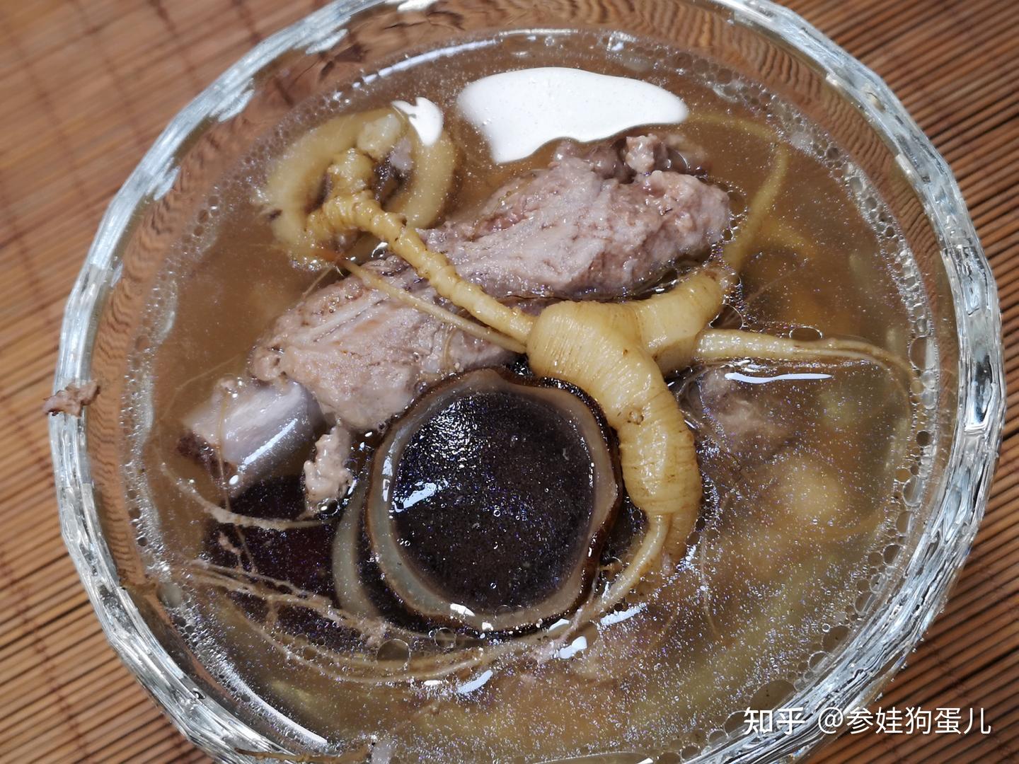 人参煲汤如:人参鸡汤人参排骨汤人参鹿茸乌鸡汤等都是日常生活每个家族常用的使用方式,每家都有自己的中药配伍习惯,或者都是根据医生建议的方法进行,即是传统又是大家习惯的一种煲汤方式,参娃狗蛋个人建议,煲汤同样更好单参单盅蒸鸡汤或人参排骨汤等,同样因为蒸盅密封,营养保留得更全面,效果当然会更好一点,因此参娃狗蛋经常叫独参鸡汤等,自私的人参鸡汤,更好一个人独享。