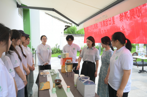 实践现场,团队依托专业优势打造“清凉补给站”,默契配合完成场景布置、材料准备等工作,引入温州市农科院郑生宏博士茶叶团队研发的栀子花白茶养生茶饮,将防暑物资与康养理念深度融合,计划为景区工作者、游客及居民送去关怀,塑立瑶溪“人文服务”标识。同时布设茶席开展茶艺互动,邀请文化特派员应苗苗现场指导,收集群众建议优化服务品质。团队将补给站设为公益设施,持续输出康养文化服务,助力景区精神文明建设。
