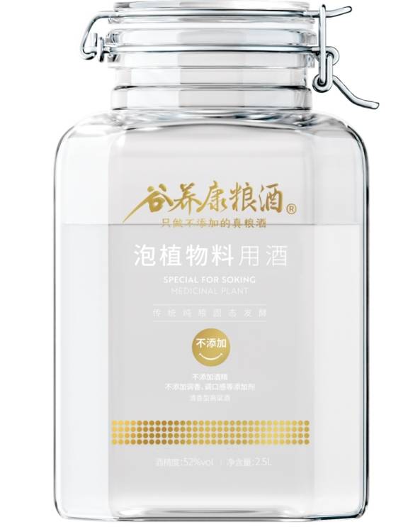 泡酒选择需谨慎,否则无益又伤身。下面,分享一些从中医典籍和泡酒实践中总结的专业经验。近年来,市面上不少白酒用食用酒精、添加剂勾调,虽口感佳但长期饮用不利健康。泡酒本为养生,选错酒不仅无益处,还可能伤身,因此务必选0添加纯粮食酒。这里笔者推荐一款“谷养康·纯粮泡酒专用酒”,其理念是只做0添加纯粮酒,专为泡酒研发的专用酒酒体低酸低酯,不易饱和,更易析出药材中有益物质。