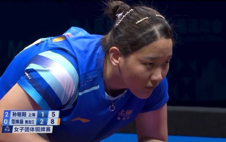 决胜局,孙铭阳5-1领先开局,中局7-2领先,范姝涵追至5-7。不过8-5后孙铭阳连赢两分10-5,率先拿到赛点,最终11-6获胜。这样孙铭阳3-2范姝涵为上海女团再舔一分。上海女团3-0黑龙江女团活动本届全运会女团铜牌。