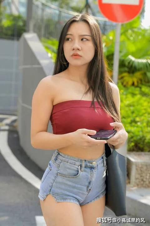 下装的浅洗牛仔短裤是“风格缓冲带”。浅蓝的水洗纹理自带复古滤镜,弱化了抹胸的浓烈;超短版型卡在大腿最纤细的位置,既拉长了腿部比例,又用牛仔的硬朗质感平衡了抹胸的柔软,让整体造型不至于陷入“甜腻”。裤腰的高收设计刚好衔接抹胸的下摆,把腰腹线条收得干净利落,是小个子也能驾驭的比例小心机。