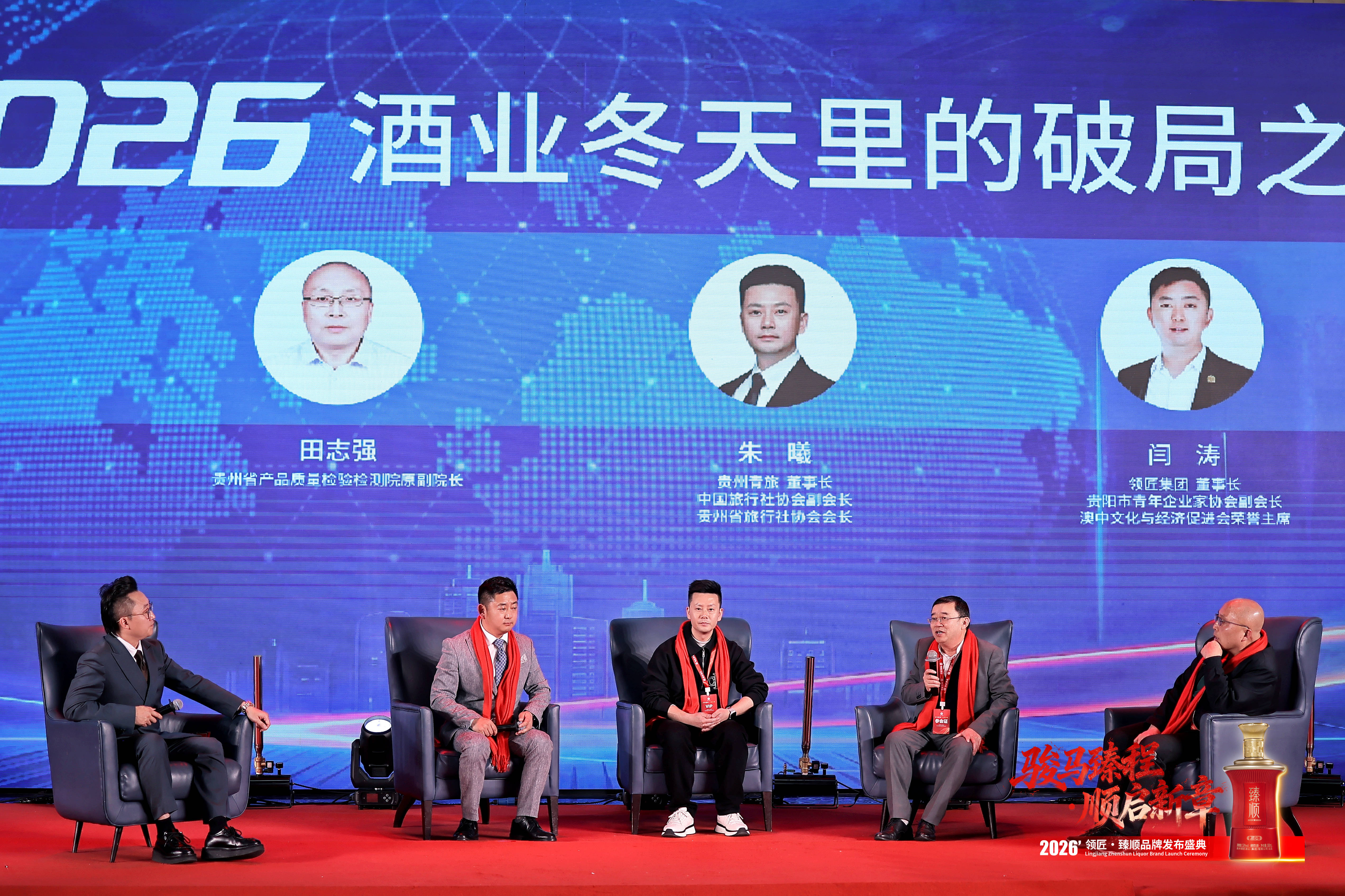 本次盛典的核心环节 “破局2026·酒业冬天里的破局之道”高峰论坛,将活动推向思想的高地。论坛由贵州大学邱树毅院长、省质检院原副院长田志强、省旅行社协会会长朱曦及领匠酒业董事长闫涛等嘉宾共话未来。