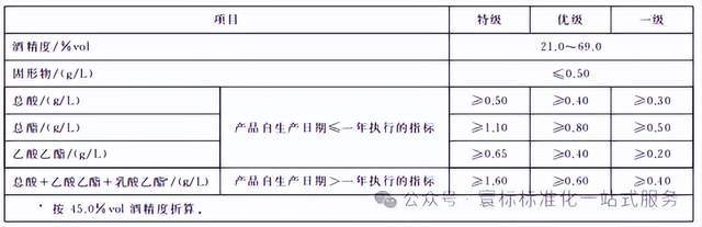 对于产品标准,感官要求和理化要求最为重要。该标准对清香型白酒的质量从感官要求和理化要求两个维度进行了分级规定,主要分为优级和一级(部分特定情况下还有特级),级别越高,要求越严格。