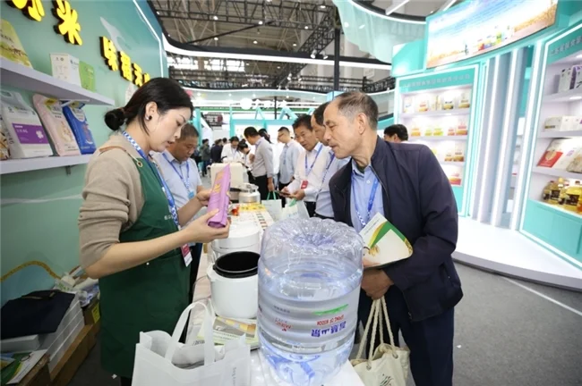 在江苏展区,22家“水韵苏米”核心企业以及江苏好粮油企业、江苏精品企业参展,吸引了众多参展者驻足咨询、品尝、选购,成为更具人气的区域之一。