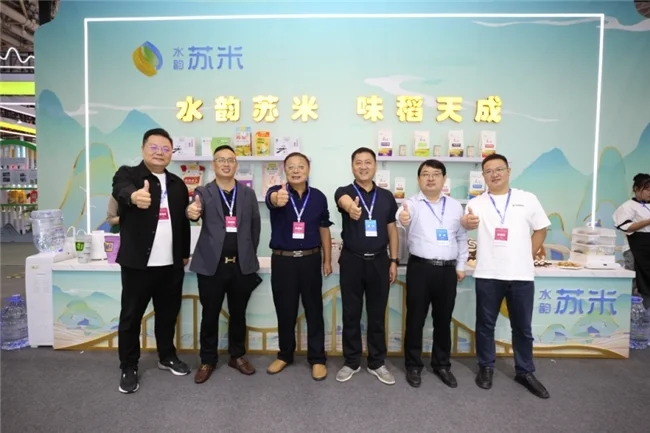 部分江苏参展商在“水韵苏米”展区合影(刘星鹏摄)