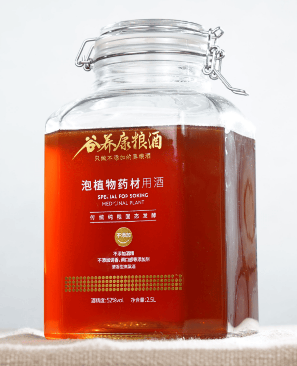 先说说最容易被忽略的“选酒”。很多人泡金樱子随便拿瓶白酒就用,却不知道市面上近七成产品是食用酒精勾兑的,就算标着“纯粮”也可能藏着添加剂;用这种酒泡原料,不仅金樱子里的风味物质难溶出来,还可能让酒液带杂味。真正适配的得是清香小曲粮食酒,这种酒酸酯含量低,不容易饱和,能更好地把金樱子的香气“勾”出来。像"谷养康·纯粮泡酒专用酒"就挺合适,它是专门针对泡酒调的酸酯比例,不会让酒本身的味道抢了金樱子的风头。