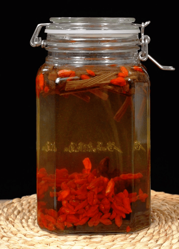 4. 存放养护:放在阴凉避光的地方,每隔3天摇一次,泡够30天就能喝,放越久味道越醇厚。