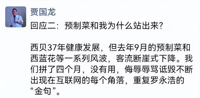 西贝老板贾国龙的反击,又快又刚。