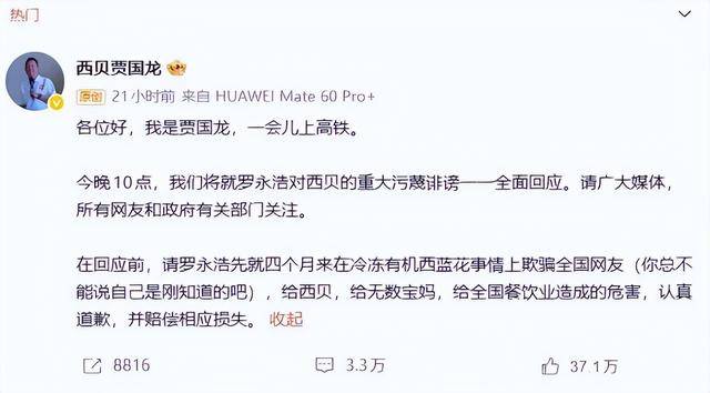 还放狠话:“开放全国370家门店后厨,不服就起诉罗永浩!”