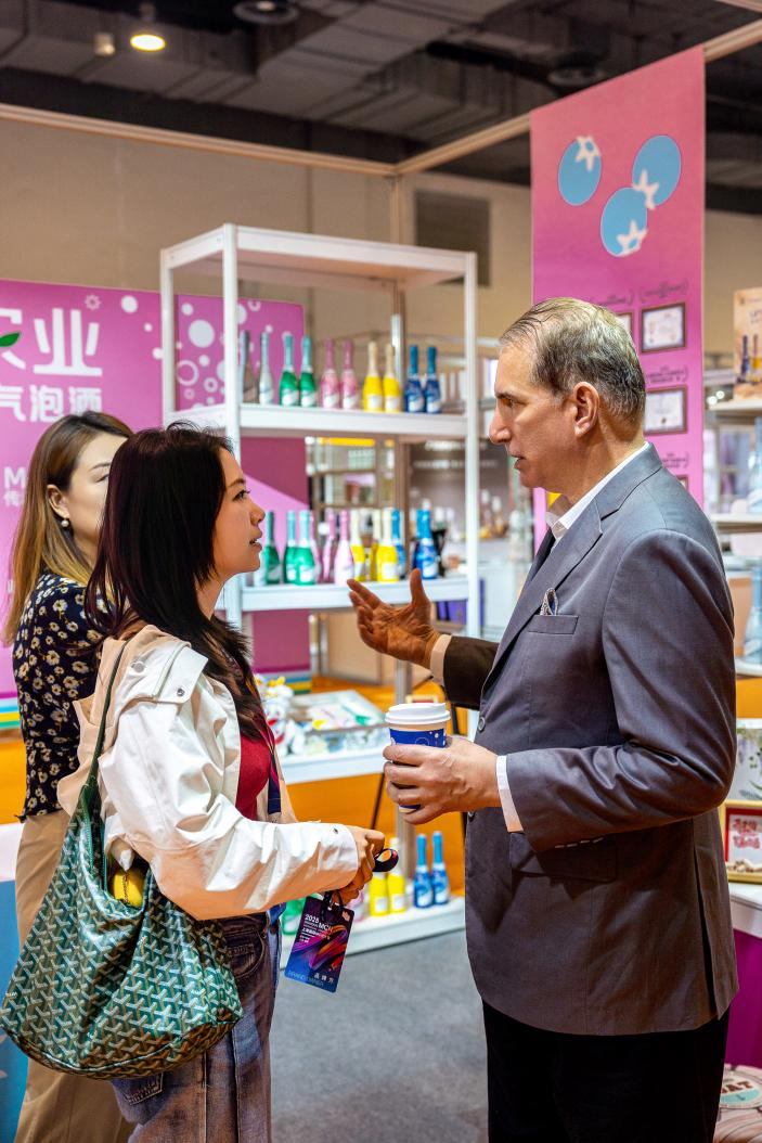 会后,前上海美商会环境委员会主席、雷曼布什投资有限公司国际副总裁Michael Joseph Rosenthal主动来到UMEET蓝莓气泡酒展位并进行品鉴。
