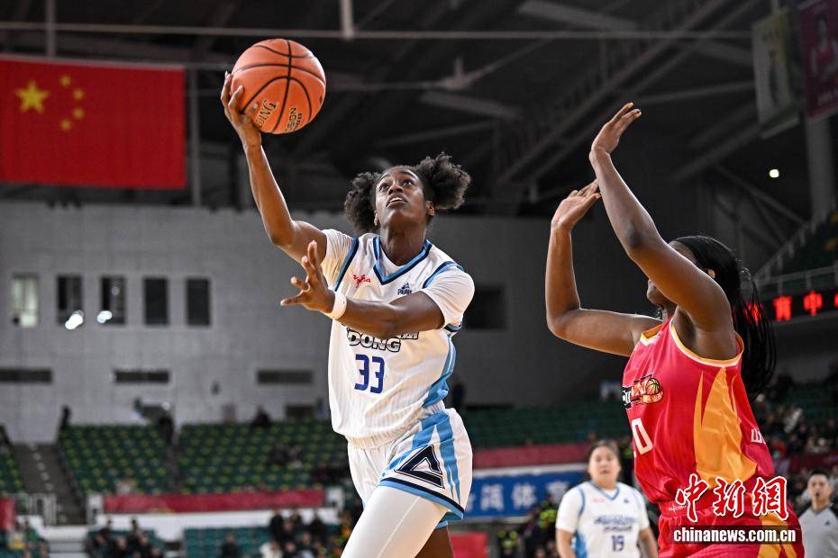 1月7日,山东队球员考德威尔(白衣)在比赛中上篮。当日,在太原举行的2025-2026赛季中国女子篮球联赛(WCBA)常规赛第13轮比赛中,山西竹叶青队主场以93比75战胜山东赤水河酒队。中新社记者 韦亮 摄返回搜狐,查看更多