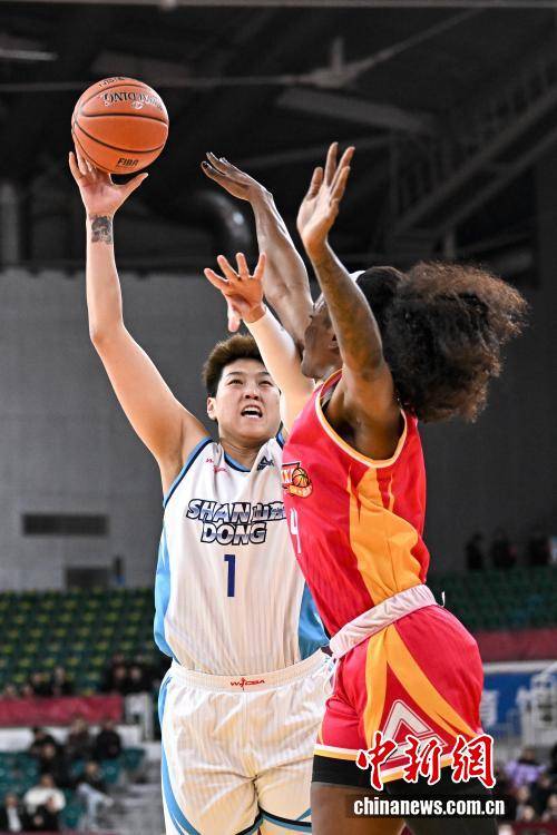 1月7日,山东队球员杨衡瑜(白衣)在比赛中投篮。当日,在太原举行的2025-2026赛季中国女子篮球联赛(WCBA)常规赛第13轮比赛中,山西竹叶青队主场以93比75战胜山东赤水河酒队。中新社记者 韦亮 摄