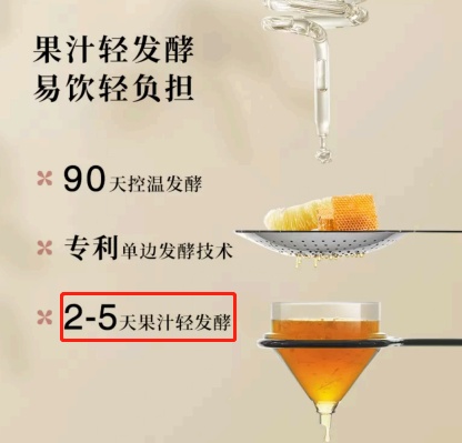 专家表示,发酵原意指水果中的糖分等物质在发酵剂的作用下转化为酒精,发酵酿造用时长,与2-5天的“轻发酵”“混合发酵”完全不同,短时间的不完全发酵,实际效果也较难判断。这样的宣称很容易使消费者将此款配制酒误认成发酵酒。
