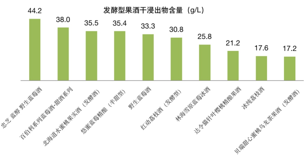 配制型果酒中的糖类等多种添加物质会影响干浸出物含量,其中的实际水果成分较难查验和比较。