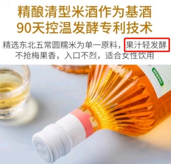 企业称,所谓“轻发酵”“混合发酵”指的是酒基(如米酒为基)中加入水果(汁)混合后再进行2-5天不完全发酵,以保留更多水果口味。