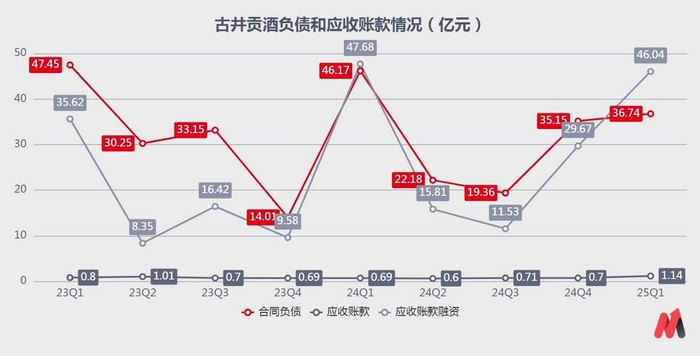 推测一,古井贡酒预测到25年增长压力大,通过合同负债将部分业绩在25年释放;推测二,古井贡酒放松了对经销商的收款政策,同时为了保障现金流进行了大额的应收账款融资。但在2024年古井贡酒经销商付款约有6至7成是银票,销售政策很难更加激进。