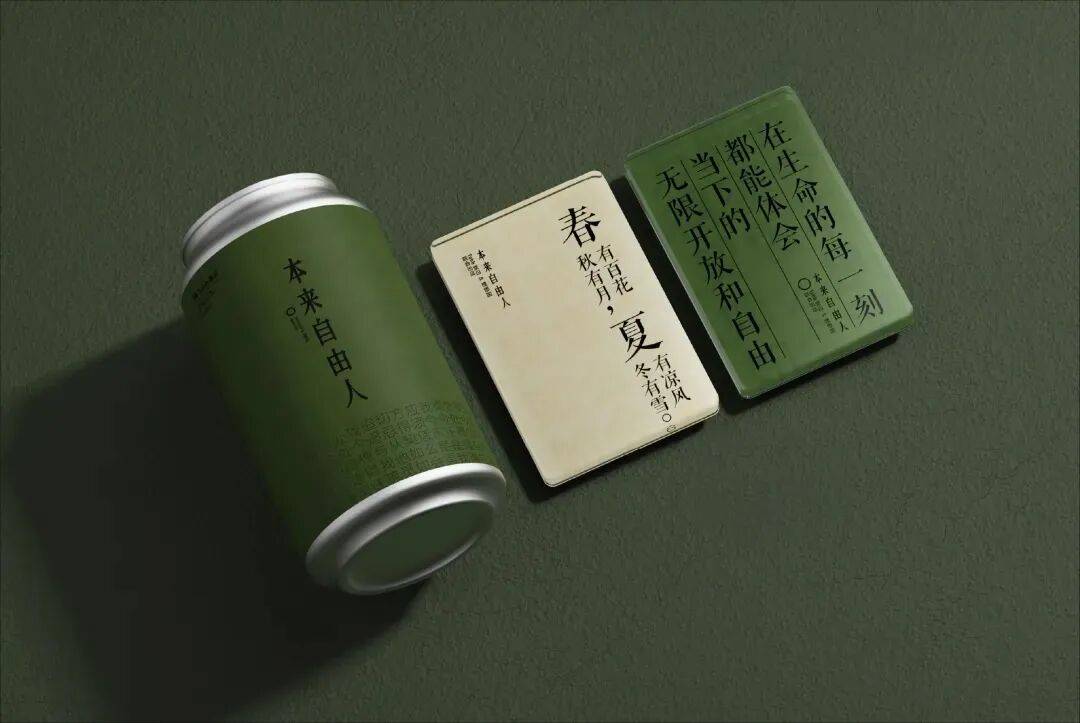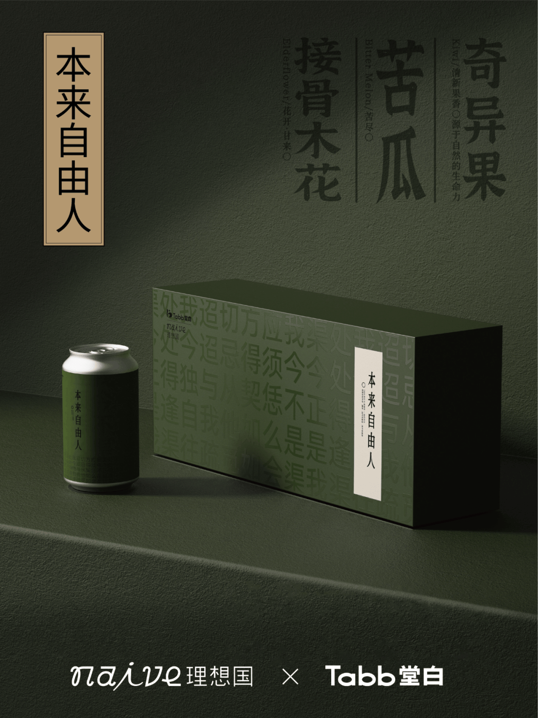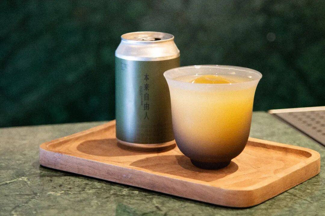 三罐「本来自由人」联名调酒,酒罐的用色和设计,延续了书的气质。颜色上与《人生解忧》封面一脉相承,一面写着本来自由人,另一面则用古书的样式呈现了酒的原料。
