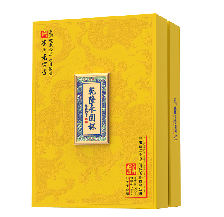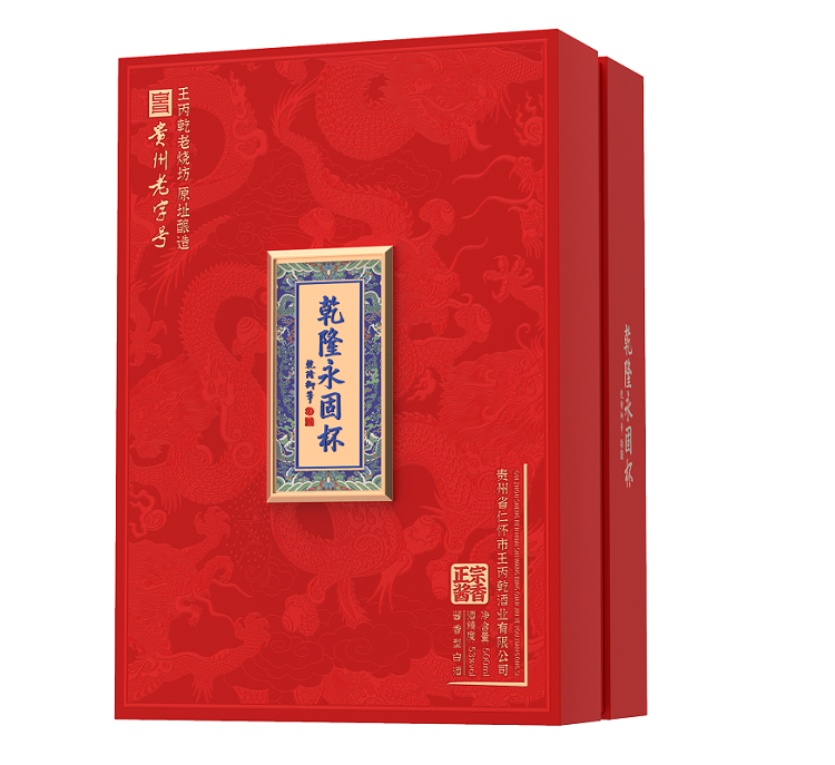 乾隆永固杯酒以国宝珍品,清乾隆皇帝御用的金瓯永固杯为原型,再现国宝金樽风采,尽显皇家帝王风范,寓意江山永固、基业长青、富贵永恒。酿造于1879年的12口清代古窖池原址出品,乾隆永固杯品牌标识源于乾隆御笔"乾隆永固杯""乾隆永固杯"是以高品质为品牌内涵,及深厚的文化底蕴的作品。酒体采用的是恪守传统酱酒工艺匠心酿造而成,