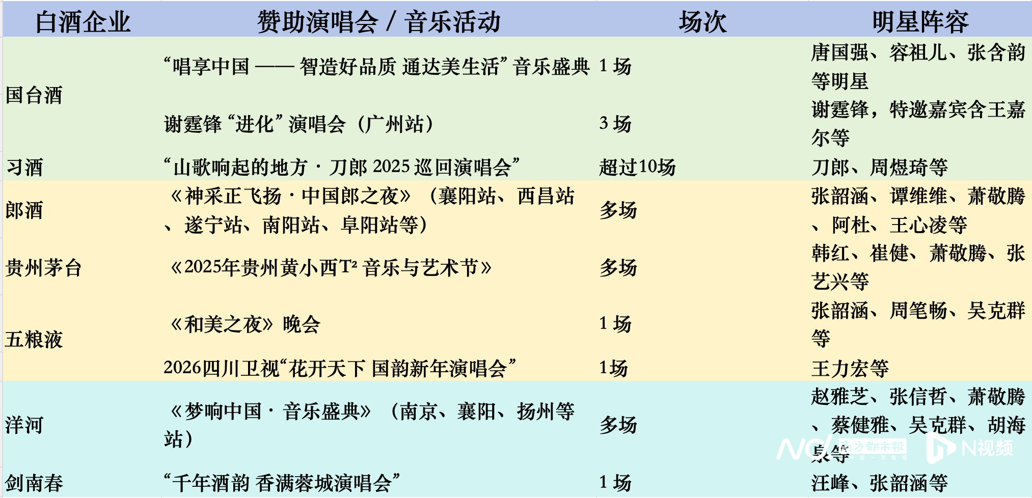2025年酒企赞助或冠名的演唱会/音乐活动,南都湾财社记者不完全统计