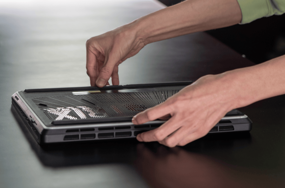 针对硬核玩家升级需求,ROG枪神9全系列均采用了免工具快拆设计。只需滑动D面锁扣即可开盖,内置光感断电保护保障操作安全,轻松升级内存与SSD。这种快拆设计无需螺丝刀,就像拆玩具一样简单,让您探索之路无任何桎梏。