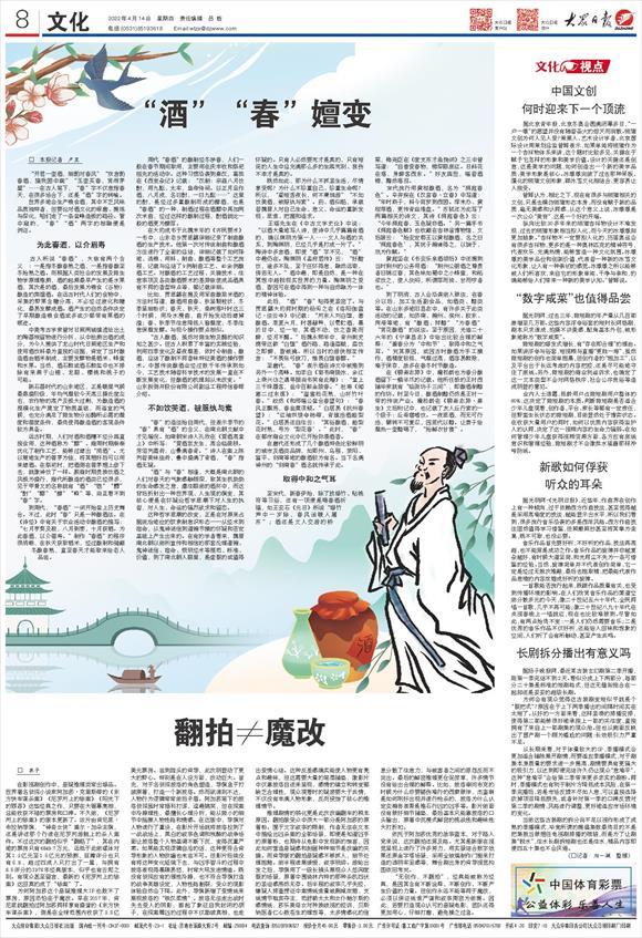 “开君一壶酒,细酌对春风”“欢言酌春酒,摘我园中蔬”“玉壶买春,赏雨茅屋”……在古人笔下,“春”字不仅意指春天,在很多场合下,还是“酒”字的转喻。
