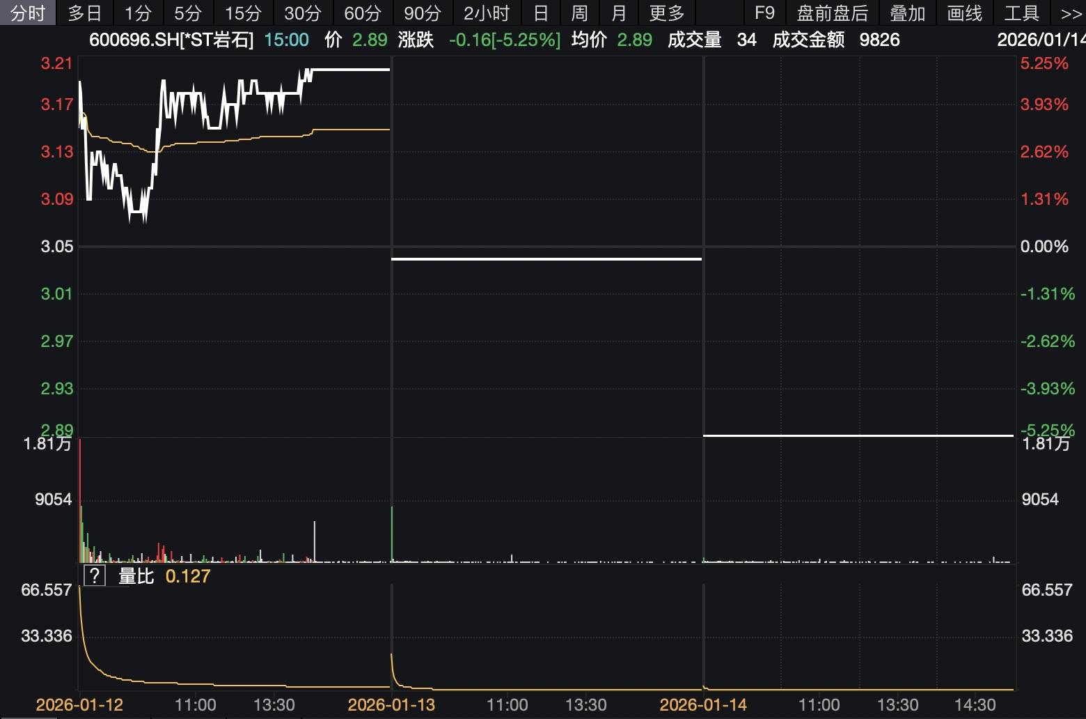 *ST岩石1月12日至14日K线图/截自:Wind