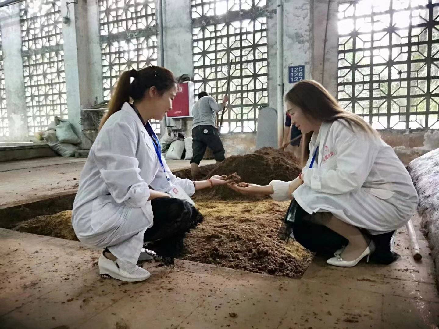 “窖池”也就是粮糟发酵的一个坑。酿酒前,粮食放入窖池中进行发酵,而经过充分发酵后的粮食,才能用来蒸煮出酒“窖池”一般是用特有的黄泥、泉水或井水掺和筑成。窖池使用的时间越长,窖池内的酒糟、窖泥互相作用,池中的微生物菌群以新旧老糟为食物,不断地生产繁衍,并形成了一个庞大的微生物群落,其中的酸、酯、醇含量及微生物种类非常多。特别是几百年的老窖泥,微生物非常丰富。当粮食放入窖池内,粮食会在微生物的作用下,进行分解、发酵,散发出粮食的香味,为蒸煮过程做好准备。