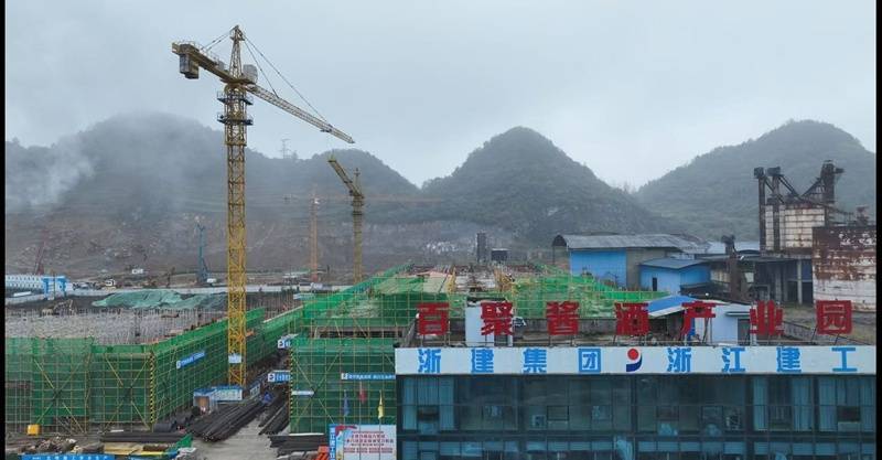 初冬时节,寒意渐浓,但在贵州省金沙县百聚酱酒产业园项目的建设工地上,机械轰鸣、塔吊挥臂,百余名建设者争分夺秒,全力保障项目如期建成投产。