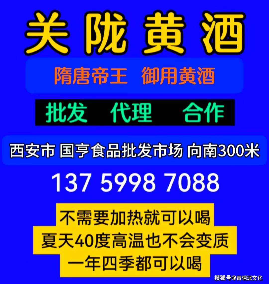 关陇贵族黄酒,简称关陇黄酒,来自西北地区的八百里秦川,发源于十三朝古都西安市,据传是北魏和隋唐时期关陇贵族集团的帝王御用黄酒。