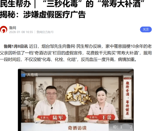 节目中,“常寿大补酒”被包装成能治疗各种疾病的“神酒”,并暗示 “平时只能给领导干部,普通老百姓没有资格订购”。