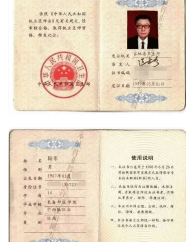 然而,记者核实发现,陆军的执业信息显示其出生于1967年,1999年才取得执业医师证书,实际年龄58岁,“40余年行医史”之说严重注水。
