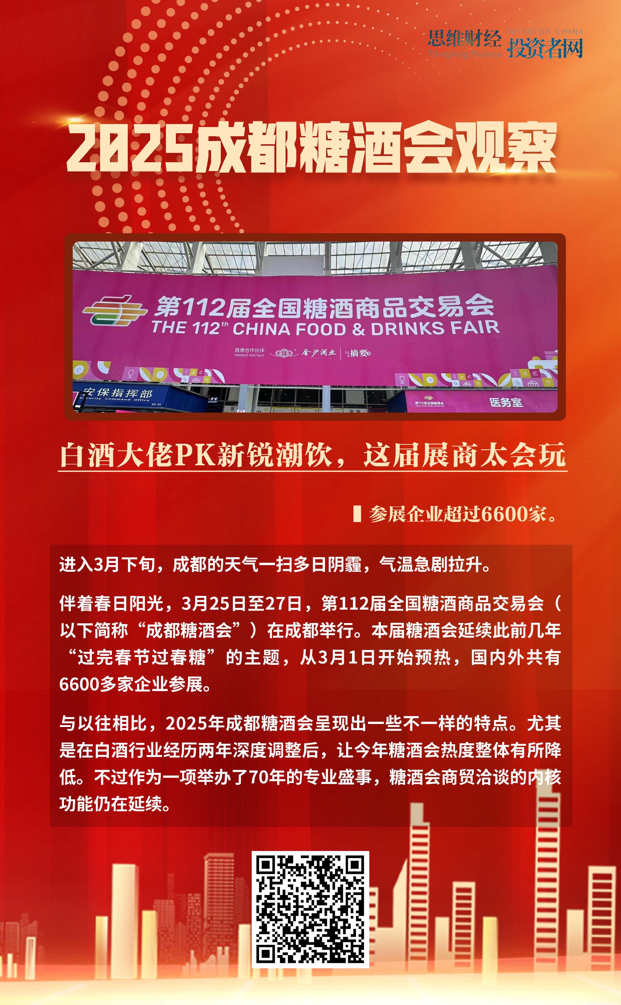 到2025年,全国糖酒会共举办了112届,深厚的积累让糖酒会兼容并蓄,以更开放的姿态喜迎八方来客。《投资者网》发现,除了白酒、饮品、流通平台等传统展商,快消、餐饮等也是糖酒会的重要参与者。